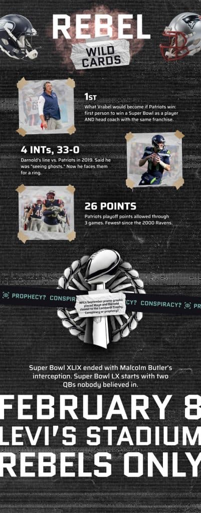 Super Bowl LX: Seattle Seahawks vs. New England Patriots. February 8, 2026. Levi’s Stadium.